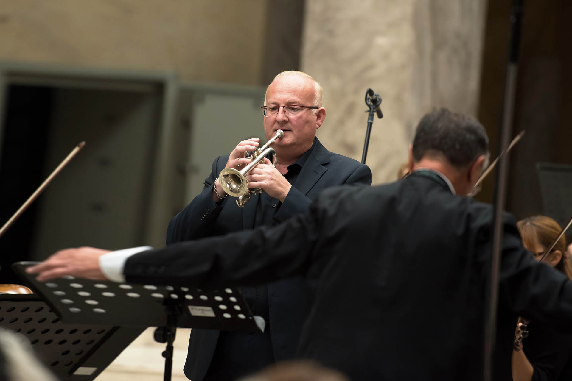 Very involved in the development of the repertoire of his instrument, he is the privileged trumpet player of many leading composers, who dedicate and entrust the creation of their works to him: Nicolas Bacri (concerto n°2), Thierry Escaich (Exaodi, Elégie , Tanzfantasy, and Résurgences commissioned by the Orchester de Bretagne), Betsy Jolas (EA), Carlos Grätzer (Aura, commissioned by Radio-France – Festival Présences), Martin Matalon (Trame V, commissioned by the Orchester National de Lorraine ), Charles Chaynes… and revives the most beautiful pages of 20th century French music: Ohana, Jolivet, Tomasi, Françaix, Schmitt, Hubeau, Enesco, Delerue, Sancan, Désenclos, Jevtic, Charlier…